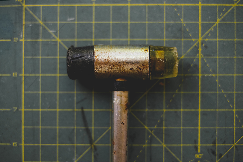 To tap down stitches without leaving marks on the leather, one needs a polished hammer.